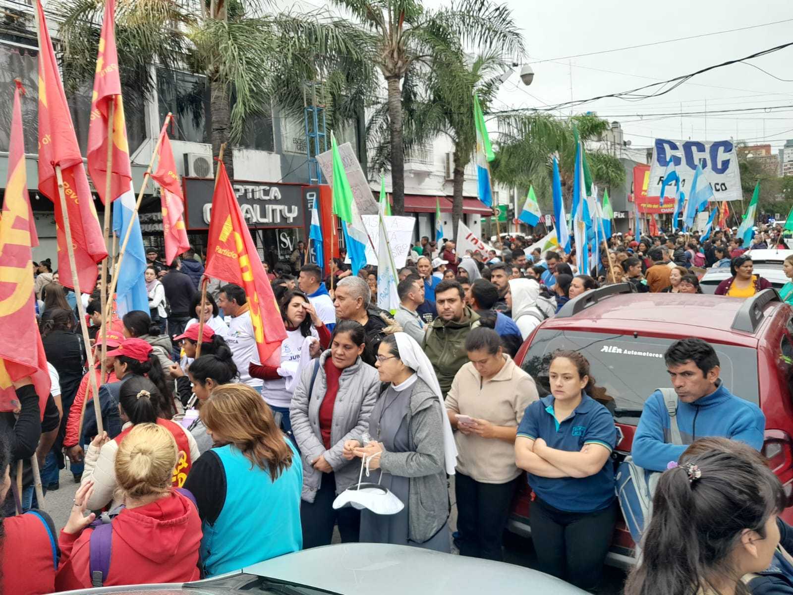 Esta mañana, gran parte del arco gremial chaqueño junto a los trabajadores y trabajadoras, se movilizó a la sede de la Fiscalía del Estado preocupados por las medidas judiciales que quieren frenar el proceso de concurso para pase a planta permanente.