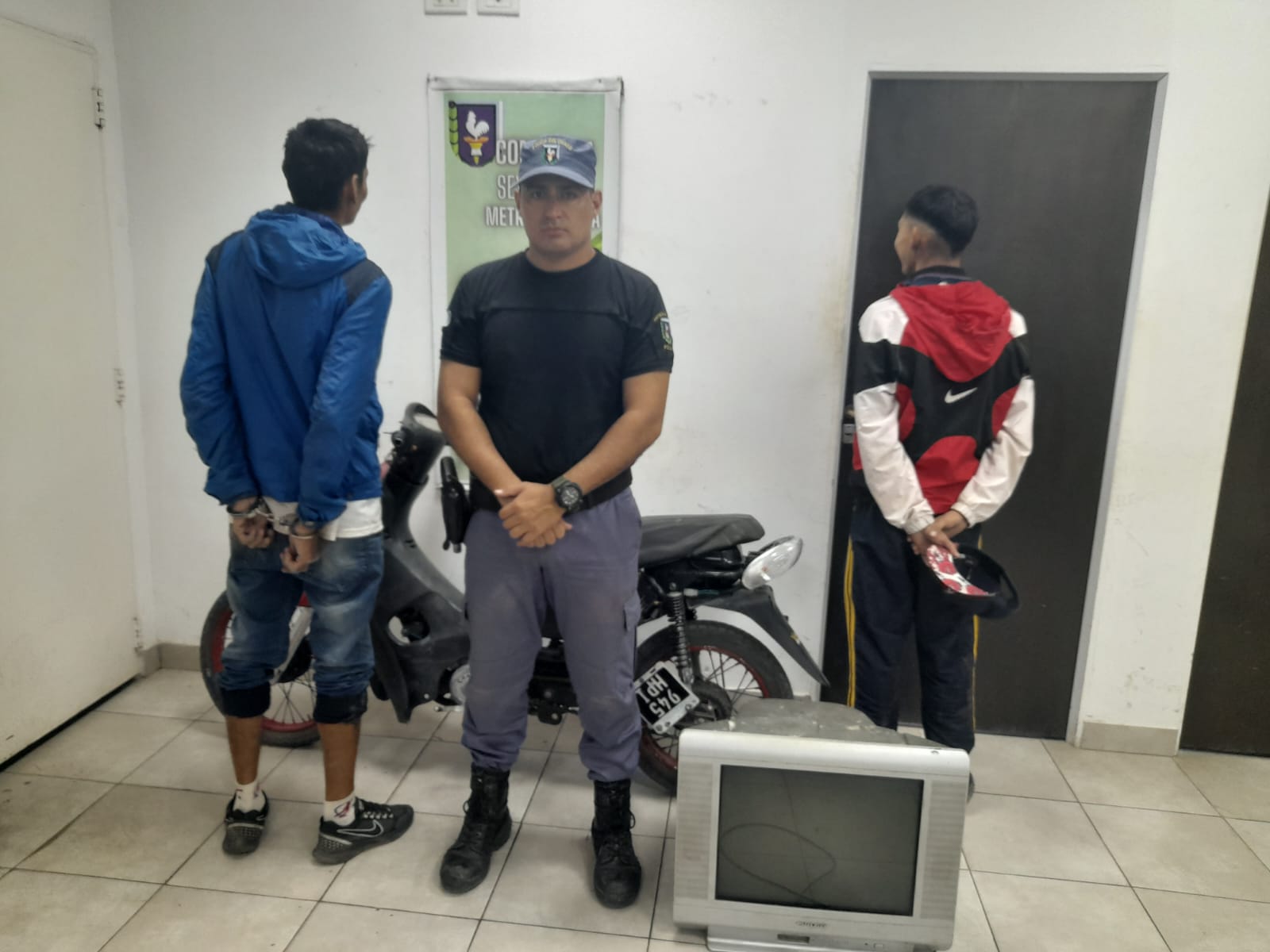 Tras circular por calle Caracas y pasaje Vedia notaron a dos sujetos que andaban en una moto sin llave de ignición transportando una T.V.