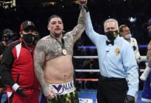 «Me dio una buena y limpia mano derecha en el segundo asalto», dijo Ruiz. «Me confié demasiado. Me quito el sombrero ante él. Después cambié y empecé a centrarme en contragolpear y trabajar el cuerpo».