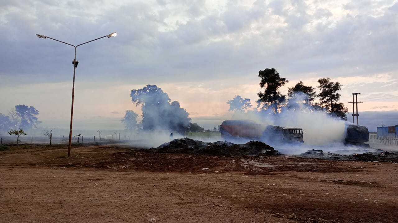 Seguidamente, registraron que las llamas alcanzaron a un camión con acoplado, un carretón, un acoplado, un camión cabina simple y aproximadamente 4.000 fardos de fibra de algodón.