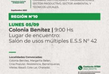 Este lunes se realiza, en Colonia Benítez, uno de los 20 talleres de participación comunitaria para actualización del Ordenamiento Territorial de Bosques Nativo. El encuentro, que comenzará a las 9 en el Salón de Usos Múltiples de la E.S.S N 42, prevé convocar referentes de organizaciones de la sociedad civil, cámaras empresariales, organizaciones de la producción, ambientalistas y pueblos originarios.