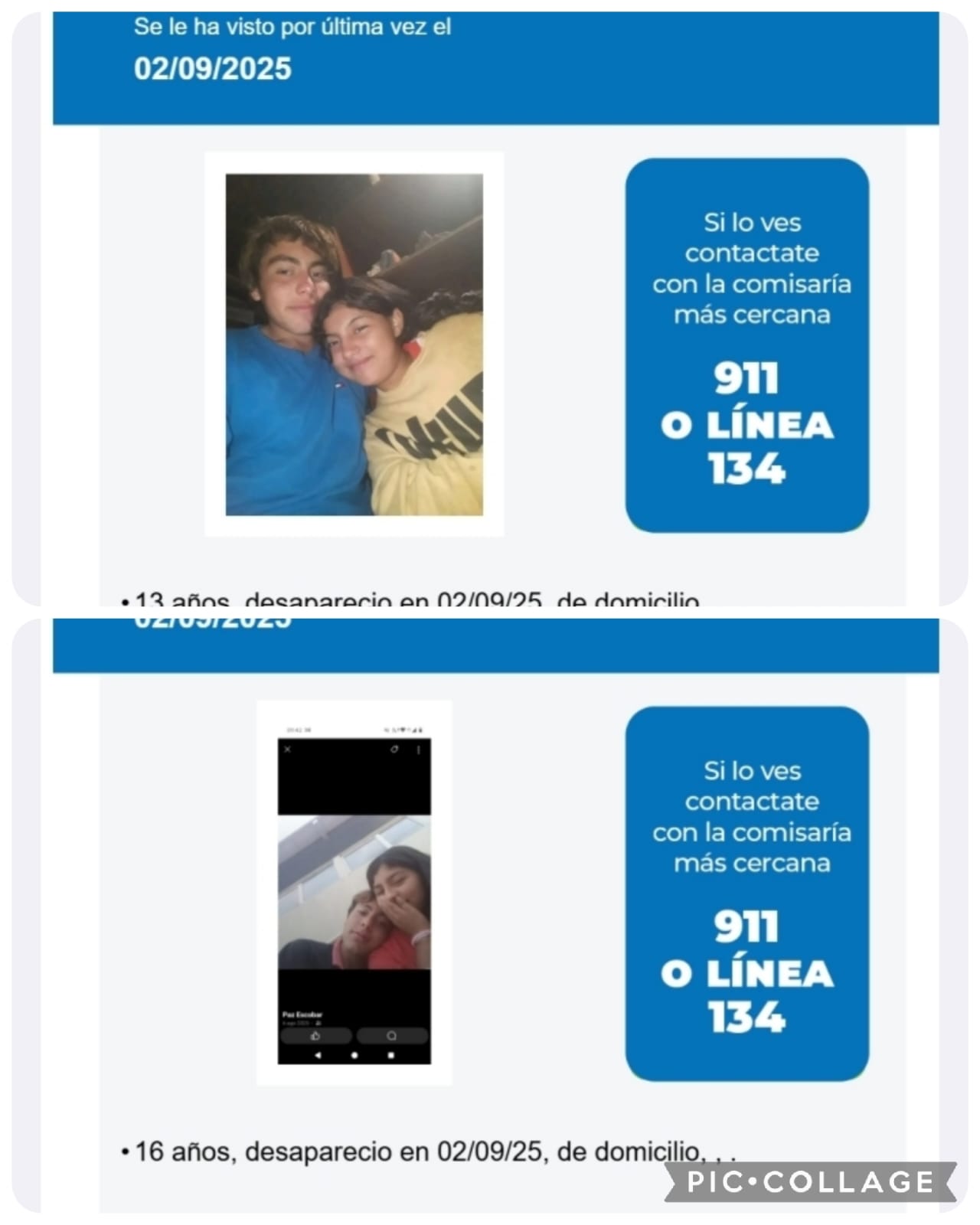 En caso de tener información respecto a los menores comunicarse con el Servicio de Emergencias 911 o con la Comisaria Segunda Barranqueras al 3624481395.