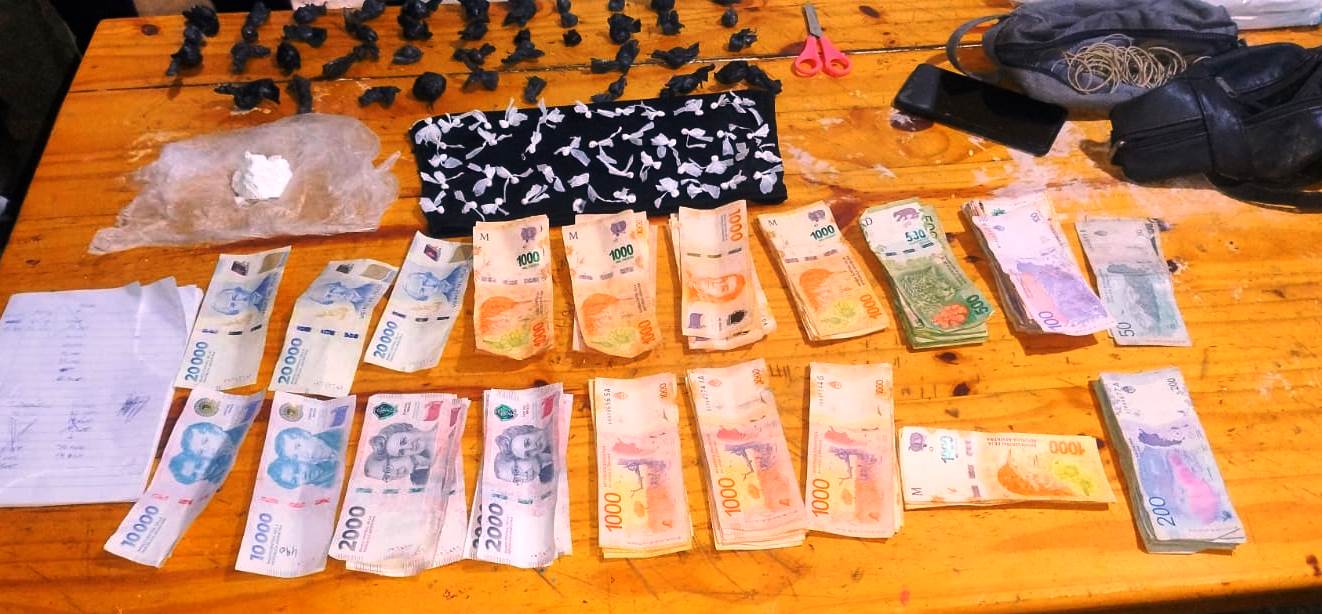 Todo esto indicó que se trataría de vendedores de drogas, por ello se labró acta de secuestro de lo hallado, como así también de la suma de $193.700 pesos, recortes de polietileno, una tijera, y un teléfono. Además secuestraron una caja con 50 cartuchos de arma de fuego calibre 22.