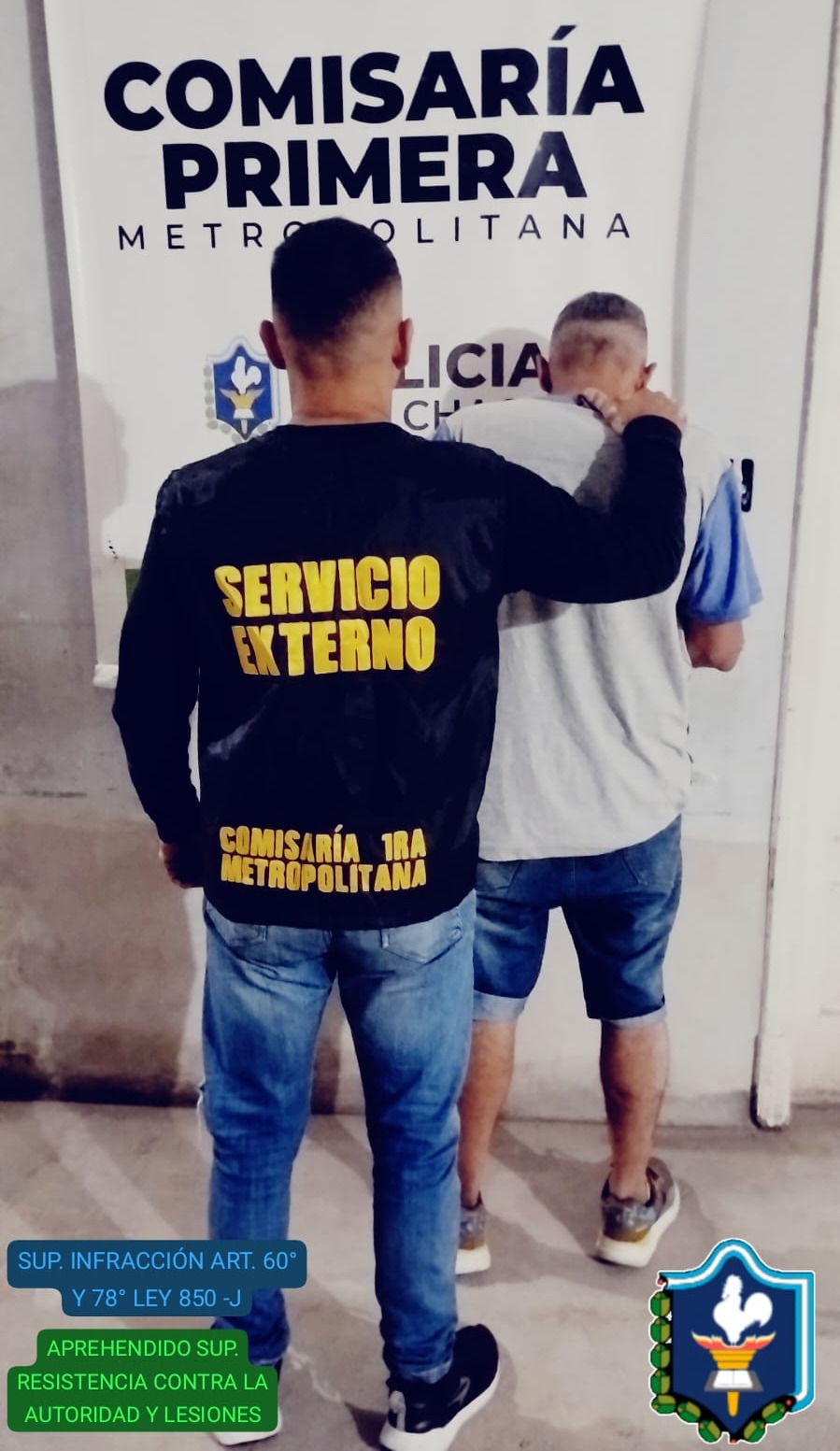 Con intervención del Jugado de Faltas, los agentes labraron un acta contravencionales por “Supuesta Infracción a Ley 850- J “Articulo 60° Desorden y 78° Ebriedad”. Asimismo, se instruyeron actuaciones judiciales con intervención de la Fiscalía N° 13, caratulando la causa como “Supuesto Resistencia Contra la Autoridad y Lesiones”.