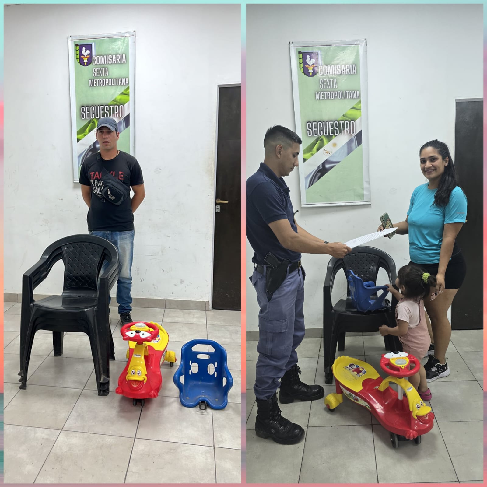 Más tarde al llegar a Echeverría al 1900 hallaron los bienes entre malezas, lograron recuperar 1 andador , 3 sillas plásticas y 1 silla de bebé.
