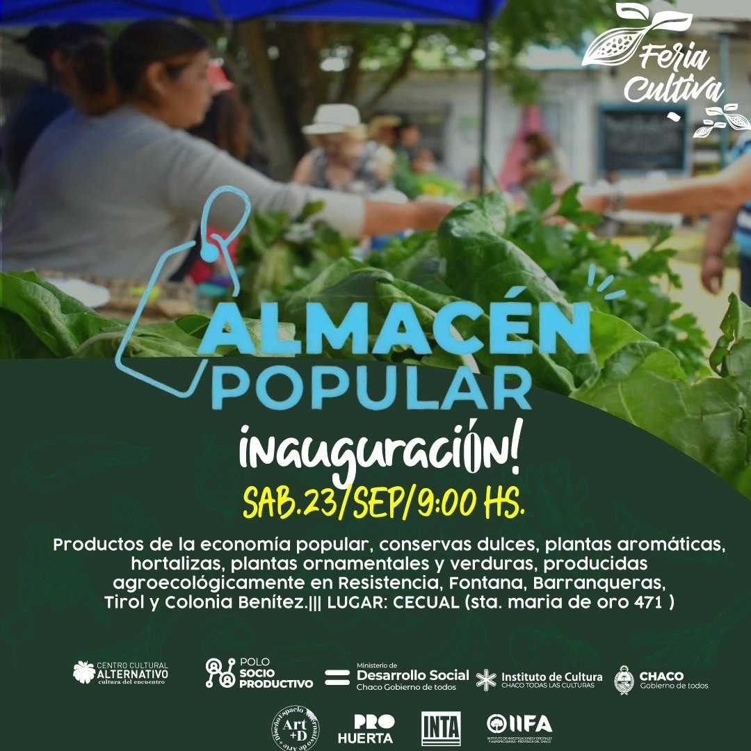 El Almacén Popular será un espacio permanente en la casa cecualera donde encontrarás a la venta productos de la economía popular, conservas dulces, plantas aromáticas, hortalizas, plantas ornamentales y verduras y una variedad de productos producidos agroecológicamente en Resistencia, Fontana, Barranqueras, Puerto Tirol, La Leonesa y Colonia Benítez.