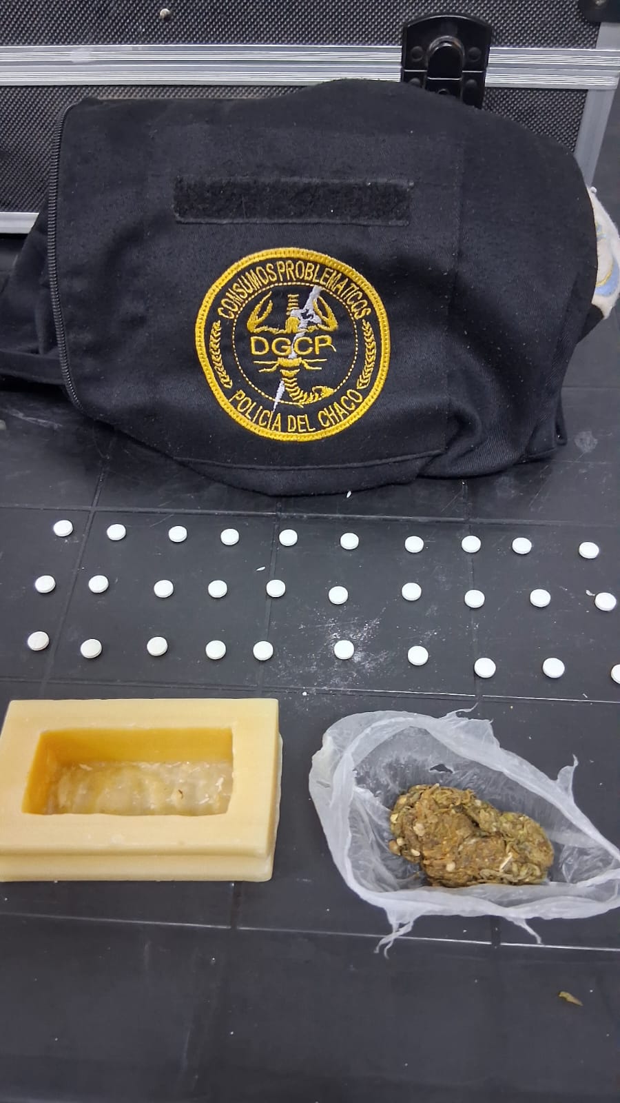 El hecho ocurrió cerca de las 21:30, cuando el personal que recibía elementos para detenidos detectó que un jabón presentaba un orificio en su interior, donde se halló un envoltorio con 8,1 gramos de marihuana, además de 30 pastillas de color blanco.