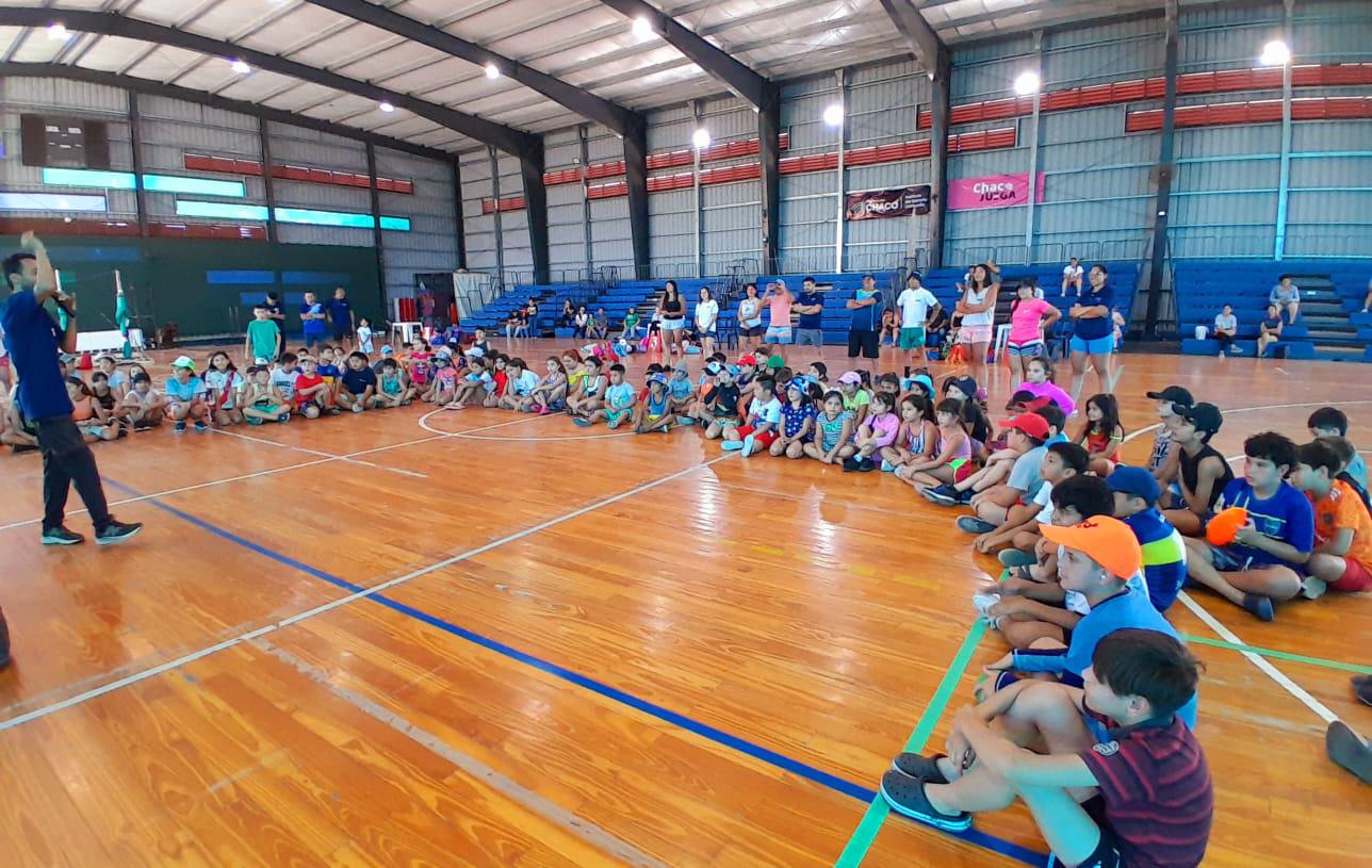 Esta mañana, el vicepresidente del Instituto del Deporte Chaqueño, prof. Gabriel Pellegrini les dio la bienvenida al primer turno de la Colonia de Vacaciones.