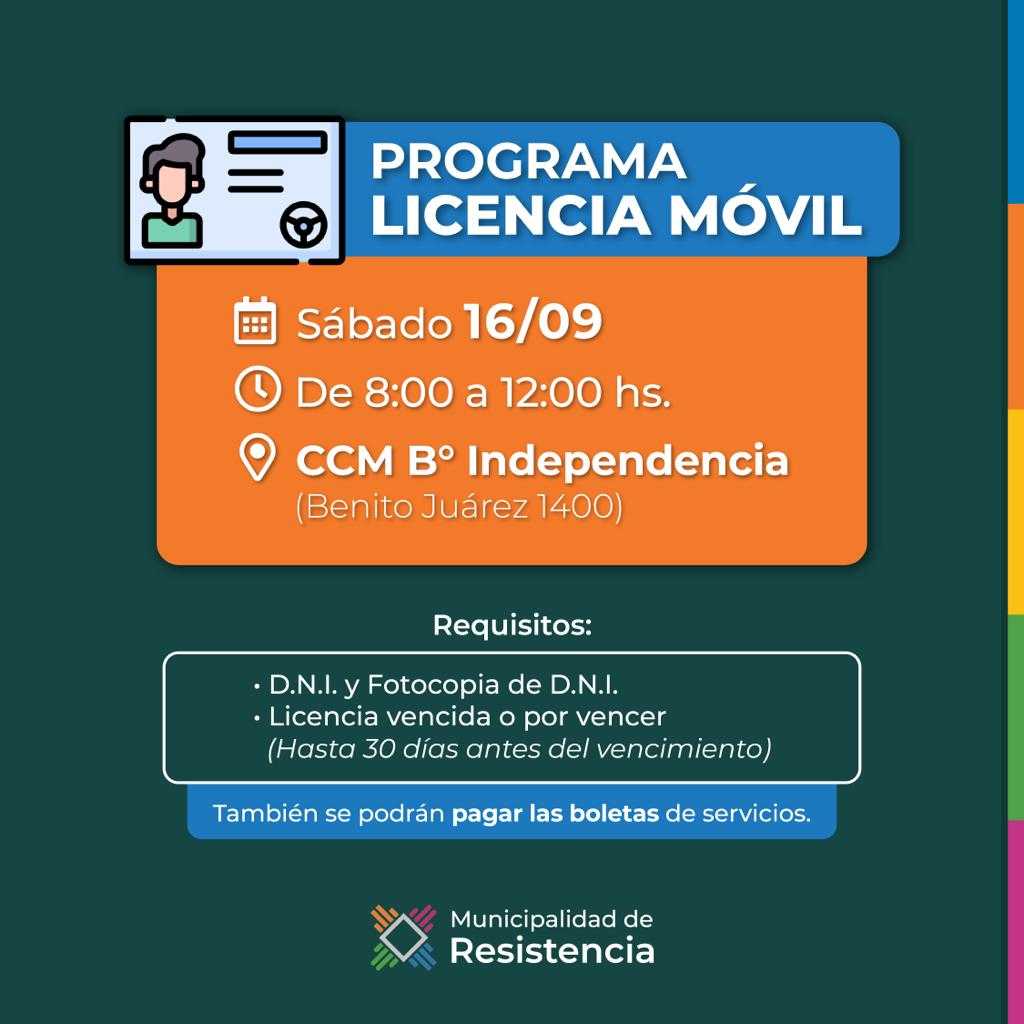 El Centro Comunitario del Barrio Independencia, ubicado en calle Benito Juárez 1400, será el escenario de una nueva jornada del Programa Licencia Móvil y Mi Primera Licencia. Este operativo permite, de 8 a 12 en el lugar indicado, realizar la renovación del carnet habilitante para conducir cualquier tipo de vehículo automotor; como así también realizar la capacitación y rendir el examen teórico básico en caso de ser la primera vez que se la solicita.