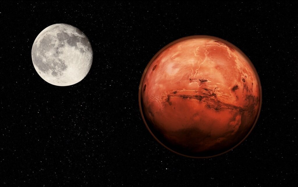 La alineación entre Marte y la Luna alcanzará su punto máximo antes de la medianoche.