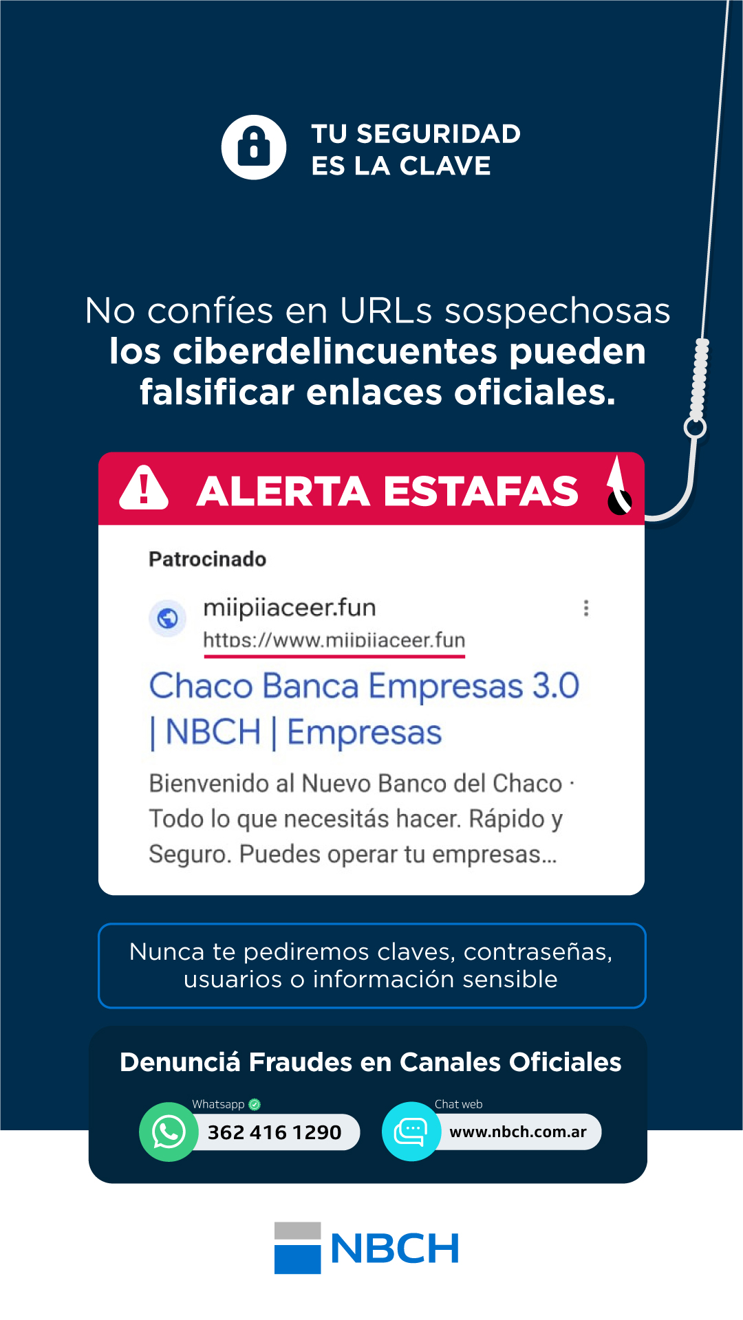 Asimismo, se sugiere guardar la página oficial www.nbch.com.ar en los favoritos para ingresar fácilmente y evitar confusiones con otros sitios.