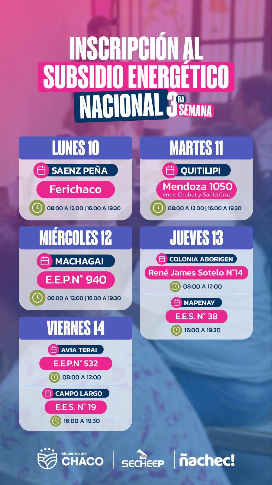 Los operativos son impulsados por el Gobierno provincial para asesorar a las familias chaqueñas sobre los pasos a seguir para adherirse al subsidio nacional a las facturas de luz. La iniciativa es realizada en forma conjunta por SECHEEP, el Ministerio de Desarrollo Humano a través del Programa Ñachec y la colaboración de Ecom Chaco.