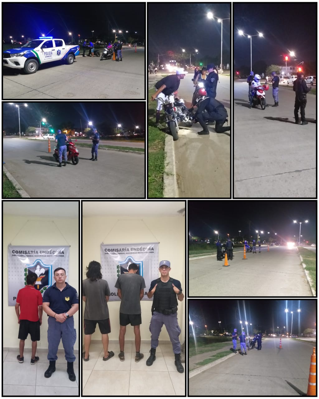 Además, 68 personas fueron demoradas por “Supuesta Infracción al Código de Faltas Provincial”, otras 17 fueron puestas en libertad mediante la misma infracción. Dos personas fueron aprehendidas por diferentes delitos y seis ciudadanos fueron notificados por “Supuesta Infracción a la Ley N° 23.737” por poseer “bochitas” de cocaína y marihuana.