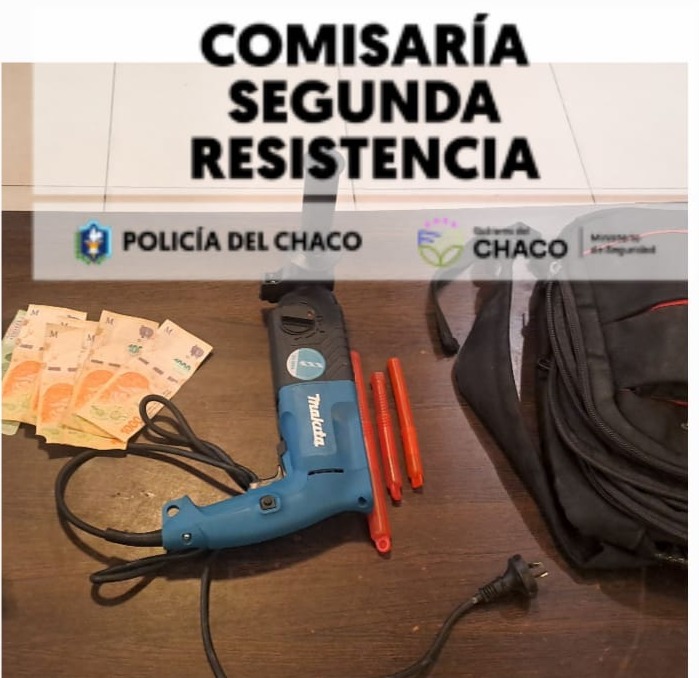 Los agentes procedieron a la demora de un hombre de 38 años y una mujer de 35 años. En su poder se secuestró un taladro marca Makita roto percutor de 24 mm color negro y turquesa, tres mechas metálicas, y la suma de $7.400 pesos en efectivo, elementos que habrían sido sustraídos del taller.