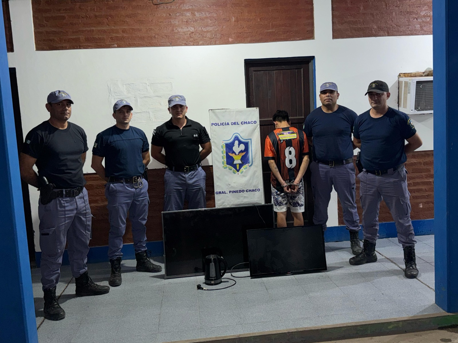 Cerca de las 23:00, los agentes lograron el secuestro de un televisor LCD de 43″ marca Noblex, un televisor LED de 32″ marca LG y una pava eléctrica marca ATMA en la zona de calle 4, entre 3 y 5. Los elementos se encontraban en poder de un joven de 22 años, quien intentaba comercializarlos a bajo costo.