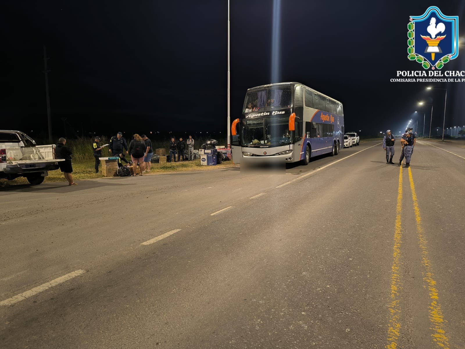 En la madrugada del sábado, personal de la Comisaría de Presidencia de la Plaza, en conjunto con Patrulla Vial de Sáenz Peña, detuvo un colectivo de pasajeros en la intersección de la Ruta Nacional 16 y la Ruta Provincial 7. Durante el control, se constató que la unidad transportaba mercadería de origen extranjero sin el aval aduanero correspondiente.