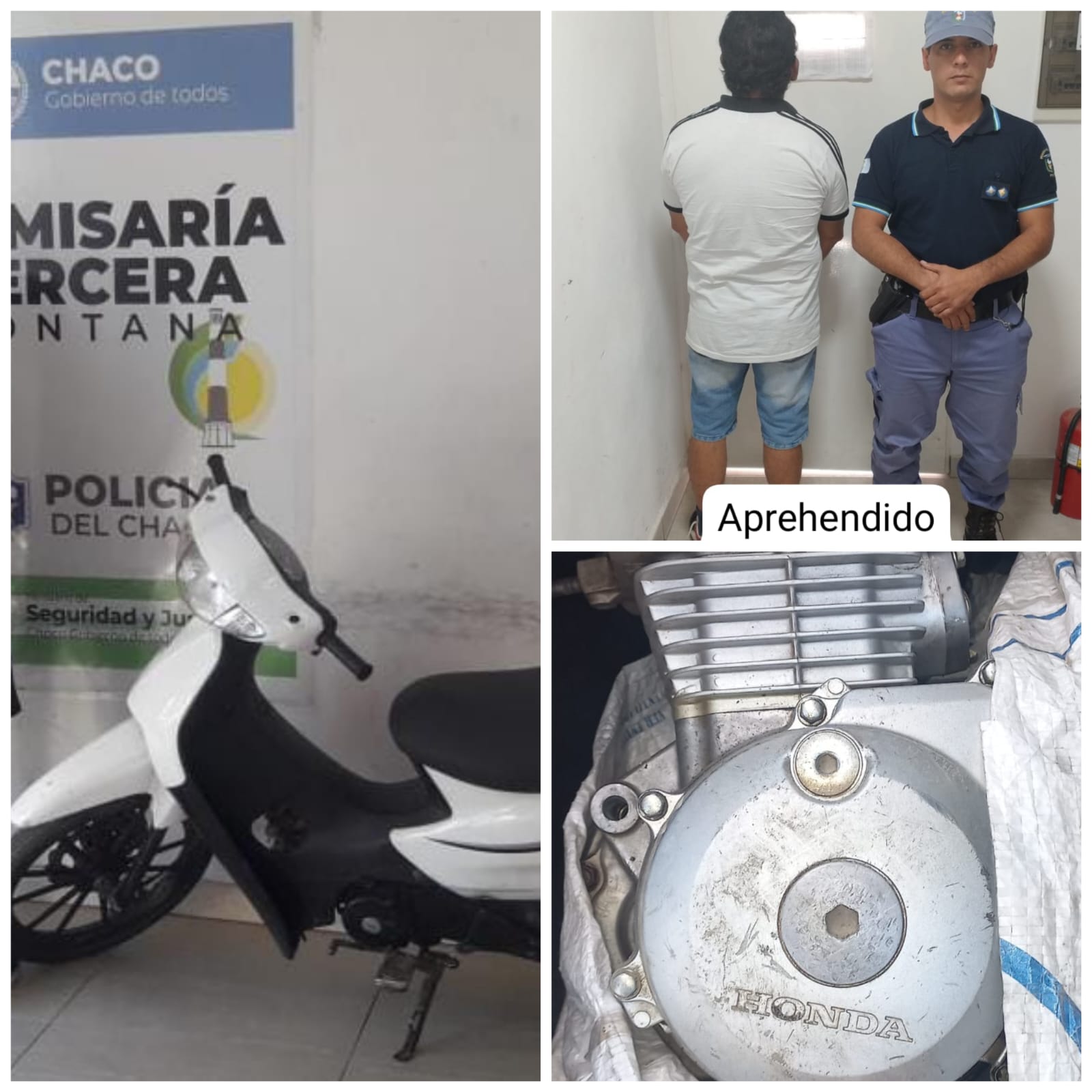 Por su parte personal dela Comisaría Tercera de Fontana realizó un operativo de control motovehicular en Avenida Alvear y Río Negro, en el que detuvieron la marcha de una moto tipo 110 cc color blanco conducido por un hombre identificado como G.B.N de 25 años, y al realizar la consulta en el padrón unificado arrojó un pedido de secuestro a solicitud de la Comisaría Sexta en una causa de Supuesto Robo, por lo que se procedió al secuestro del rodado y a la conducción del sujeto.