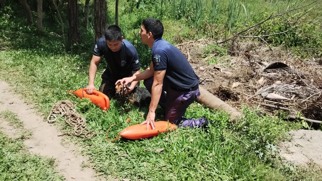 De ésta manera se solicitó presencia del personal del Dpto. Bomberos Metropolitana, arribando al lugar móvil FR-29 – Rescate, a cargo del Cabo Primero de Policía Brítez Cristian y el Cabo Primero de Policia Leiva Denis junto a demás personal, en donde ingresa en primer lugar el empleado Leiva y al lograr dar con el can, lo socorre Brítez.