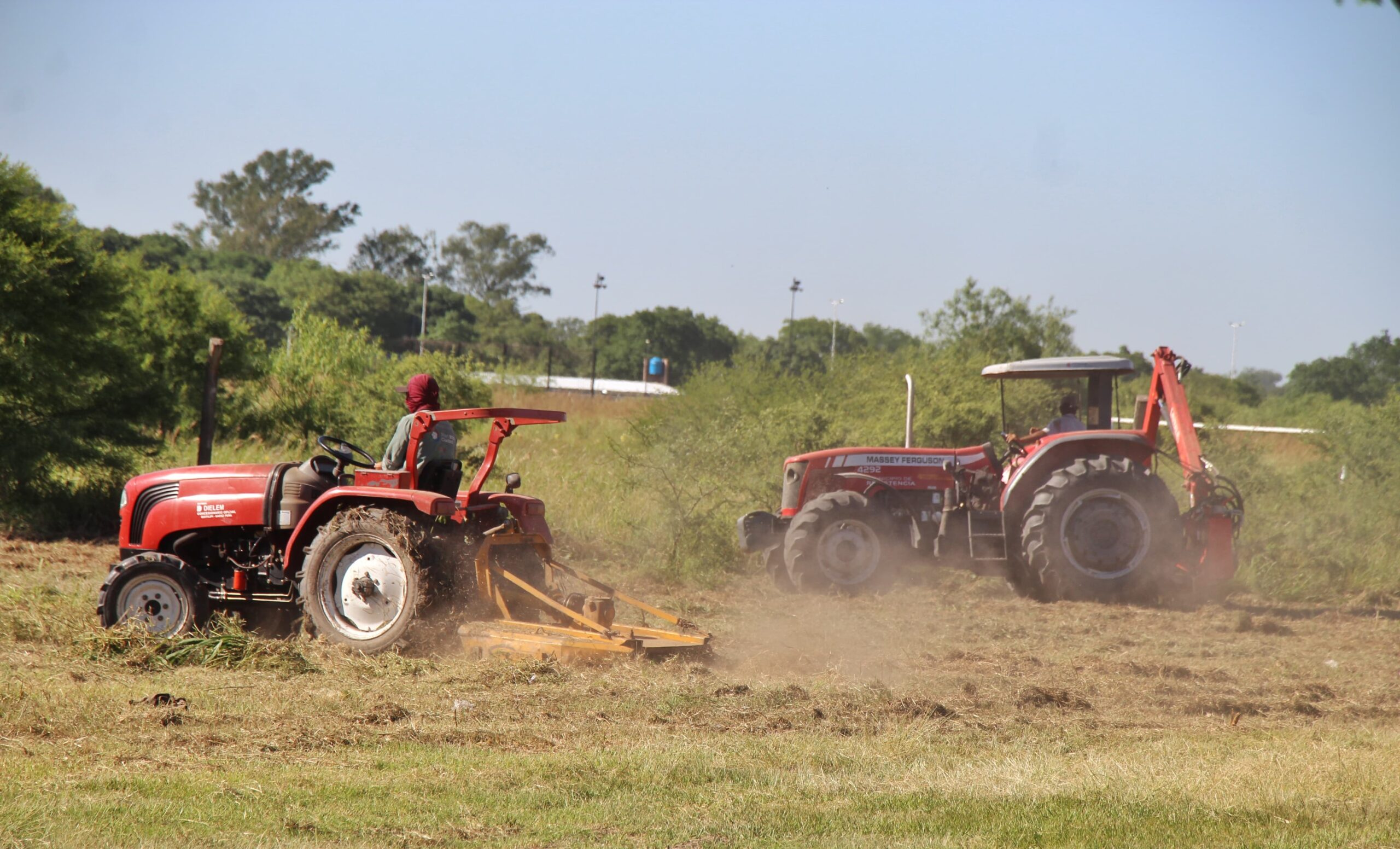 Para este dispositivo ambiental, utilizaron dos tractores, uno con desmalezadora y el otro con un brazo hidráulico para facilitar el corte de pasto, más 15 personas que llevan adelante el trabajo en doble turno.
