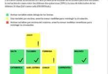 «Con resultados por encima de un parámetro es amarillo; con los dos por encima es rojo. Ya con amarillo, las jurisdicciones pueden tomar medidas de restricción de circulación». Esa fue la frase con la que una fuente sanitaria resumió el alcance de lo establecido por el Decreto de Necesidad y Urgencia (DNU) que publicó hoy el Gobierno, en el que sugiere a las provincias aplicar restricciones a la circulación nocturna para frenar el crecimiento de casos de coronavirus Covid-19.