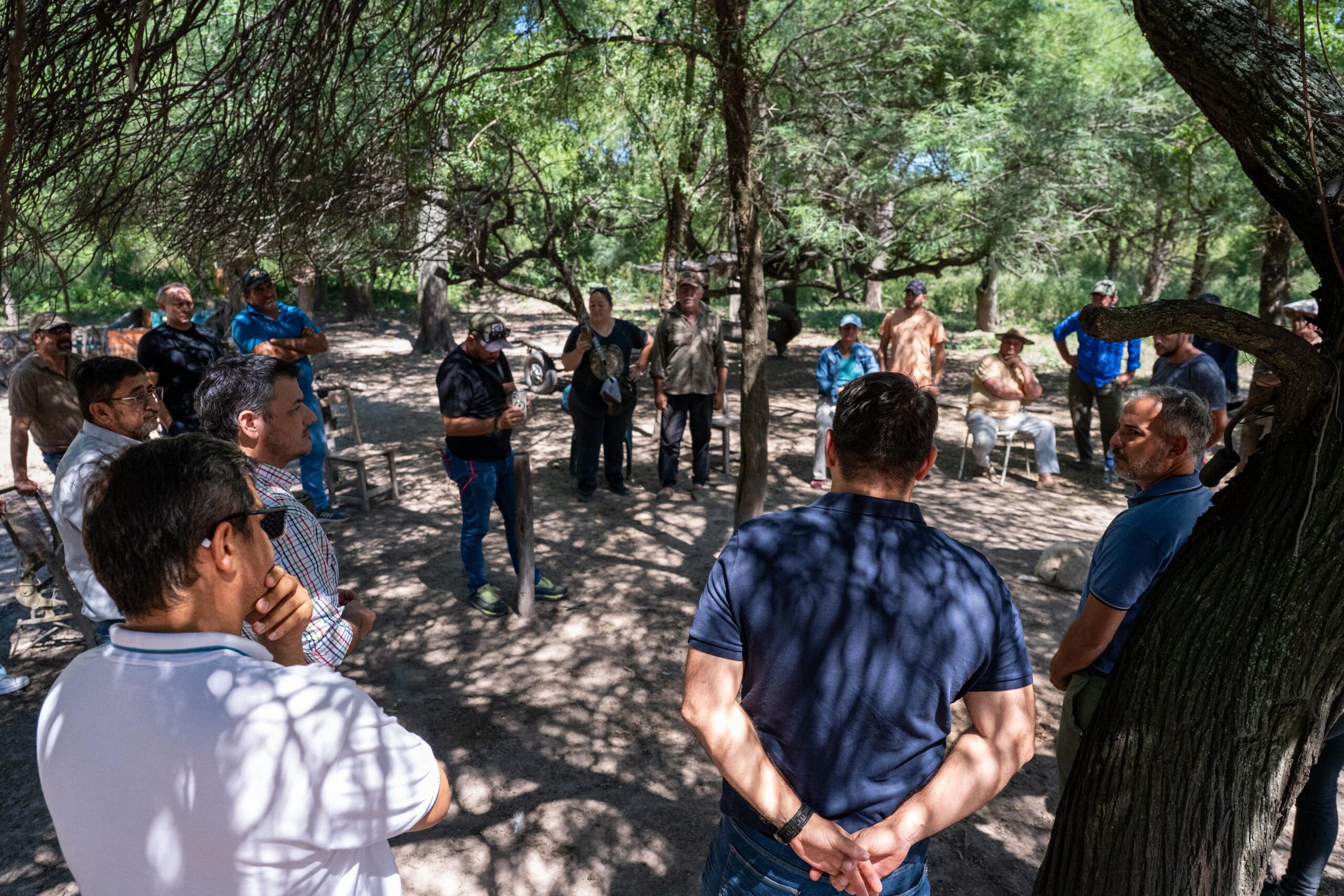 El secretario de Asuntos Estratégicos, Marcos Resico junto al subsecretario de Energía, Joaquín Sabadini, se trasladaron hasta el paraje Las Bravas, en Pampa del Indio, donde mantuvieron un encuentro con vecinos beneficiarios de una obra eléctrica que permanece paralizada, desde hace varios años.