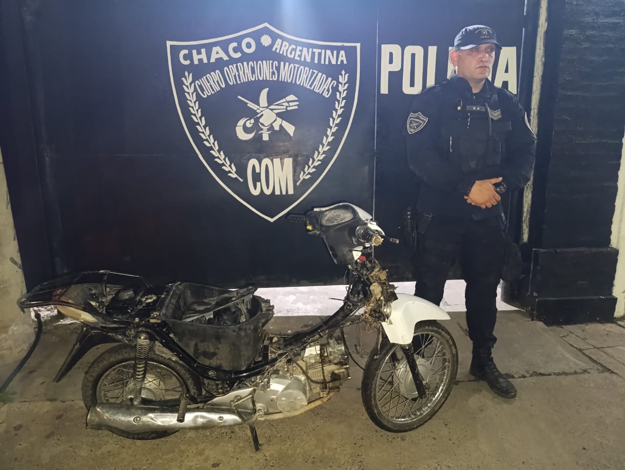 El personal de la División Cuerpo de Operaciones Motorizadas logró recuperar una motocicleta que era buscada por un hecho de robo a mano armada. El operativo tuvo lugar anoche, cerca de las 00:30, en la intersección de la avenida Arribalzaga y la calle Fortín Tapenagá, en la zona sur de la ciudad.