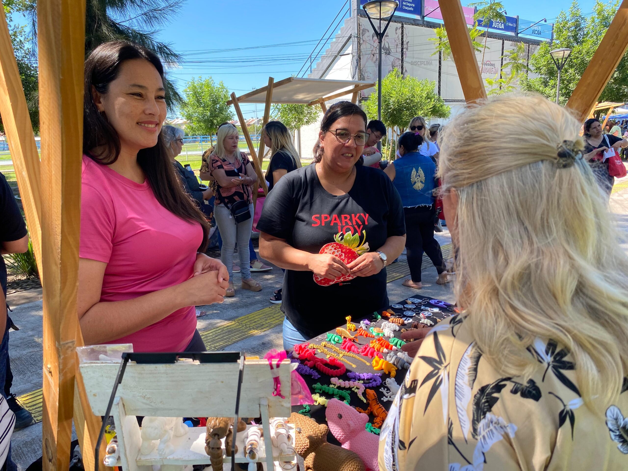 Ampliando las opciones, peluqueros y barberos ofrecieron sus servicios de forma gratuita, mientras que emprendedores locales pusieron a disposición del público asistente los frutos de su trabajo, para quienes quisieran adquirir productos chaqueños, especialmente aquellos relacionados con las Fiestas de Fin de Año, que se encuentran articulando para mejorar sus creaciones y ventas, tanto con la Subsecretaría de Economía para el Desarrollo como con el Ministerio de la Producción y el Desarrollo Económico Sostenible.