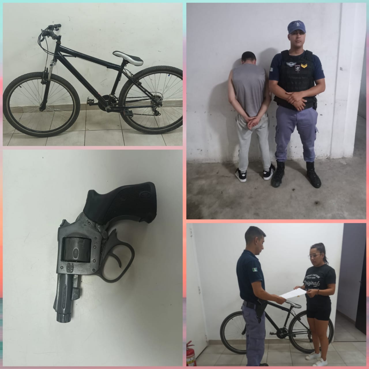 De inmediato los efectivos identificaron y demoraron al acusado, además secuestraron el arma y recuperaron la bicicleta.