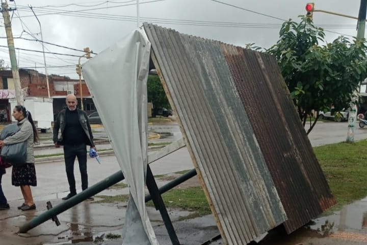 Los vientos fuertes y la estructura de la garita provocaron el desprendimiento de la base y al caer, impactó por encima de un hombre, que fue trasladado al Hospital Perrando.