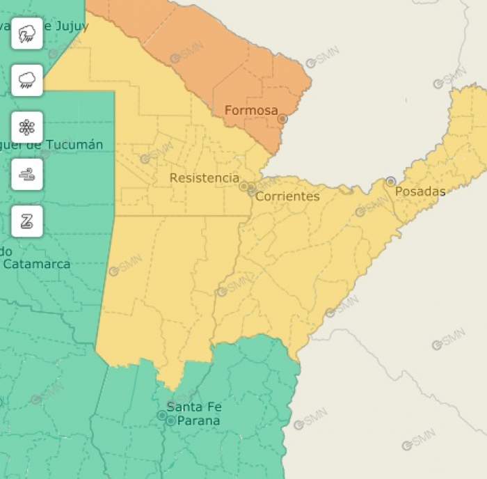 El Servicio Meteorológico Nacional informó sobre alertas amarilla por tormentas fuertes para Capital y todas las localidades del interior de la provincia de Chaco, durante la jornada de este jueves.