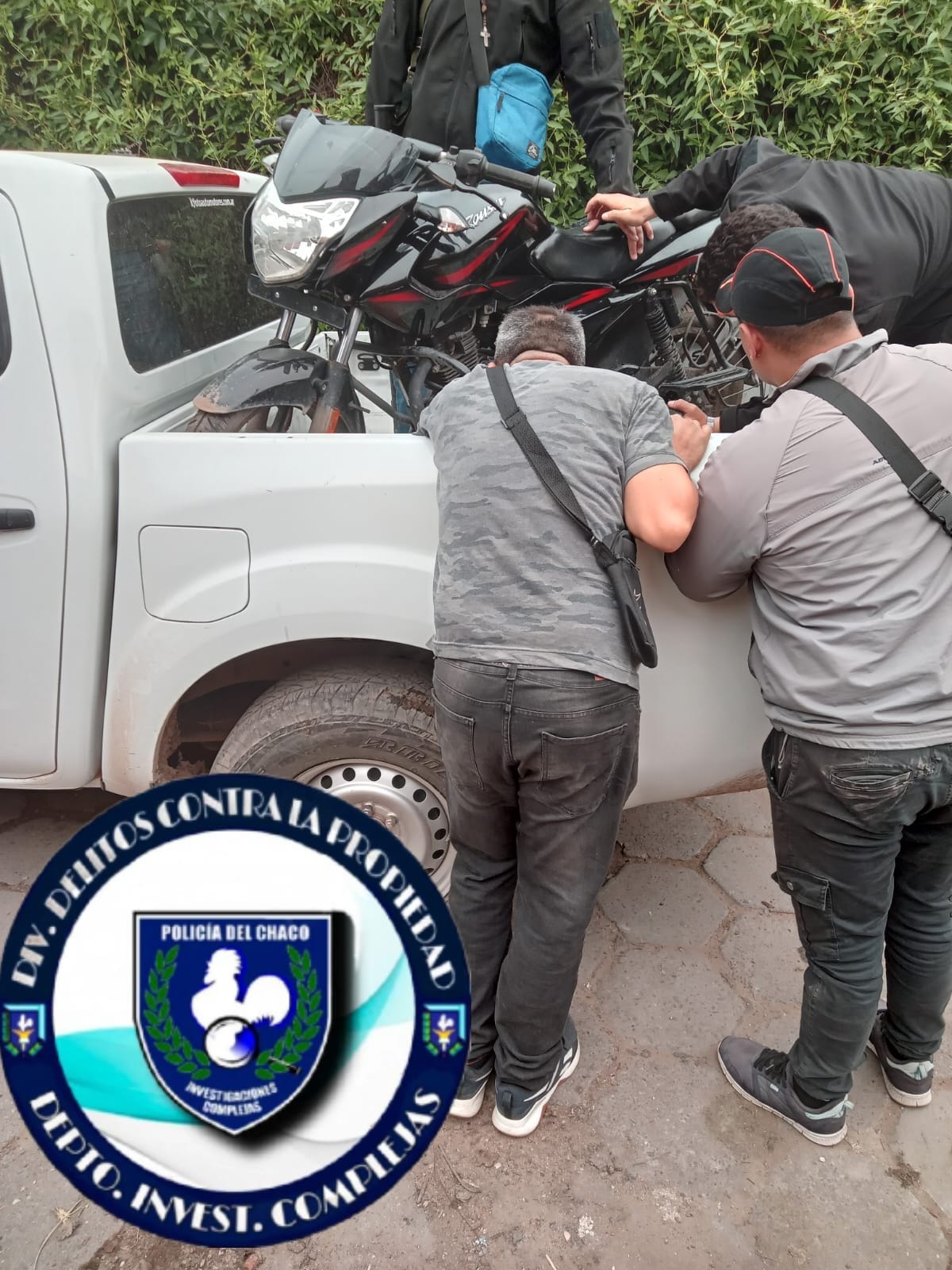 Es por ello que, tras amplio trabajo investigativo, en AV. VÉLEZ SARSFIELD Y CALLE CÓRDOBA se logró la demora de B. G. E (28), posteriormente, continuando con las averiguaciones se logro saber que B, había comercializado la motocicleta sustraída en calle Pasaje Franklin y Av. Chaco. Razón por la cual se constituyo un grupo de trabajo al lugar, donde se observó una construcción precaria (abandonada), el cual al ser verificado se logró hallar oculto (02) CASCOS COLOR ROJO Y NEGRO (01) MOTOCICLETA MARCA BAJAJ ROUSSER 135CC, COLOR NEGRO CON FRANCAS ROJAS, DOMINIO A106DQA, el cual al ser compulsado a través de plataforma policial arrojo pedido activo de secuestro relacionado a la presente causa. Acto seguido se procedió al formal secuestro de los elementos mencionados.