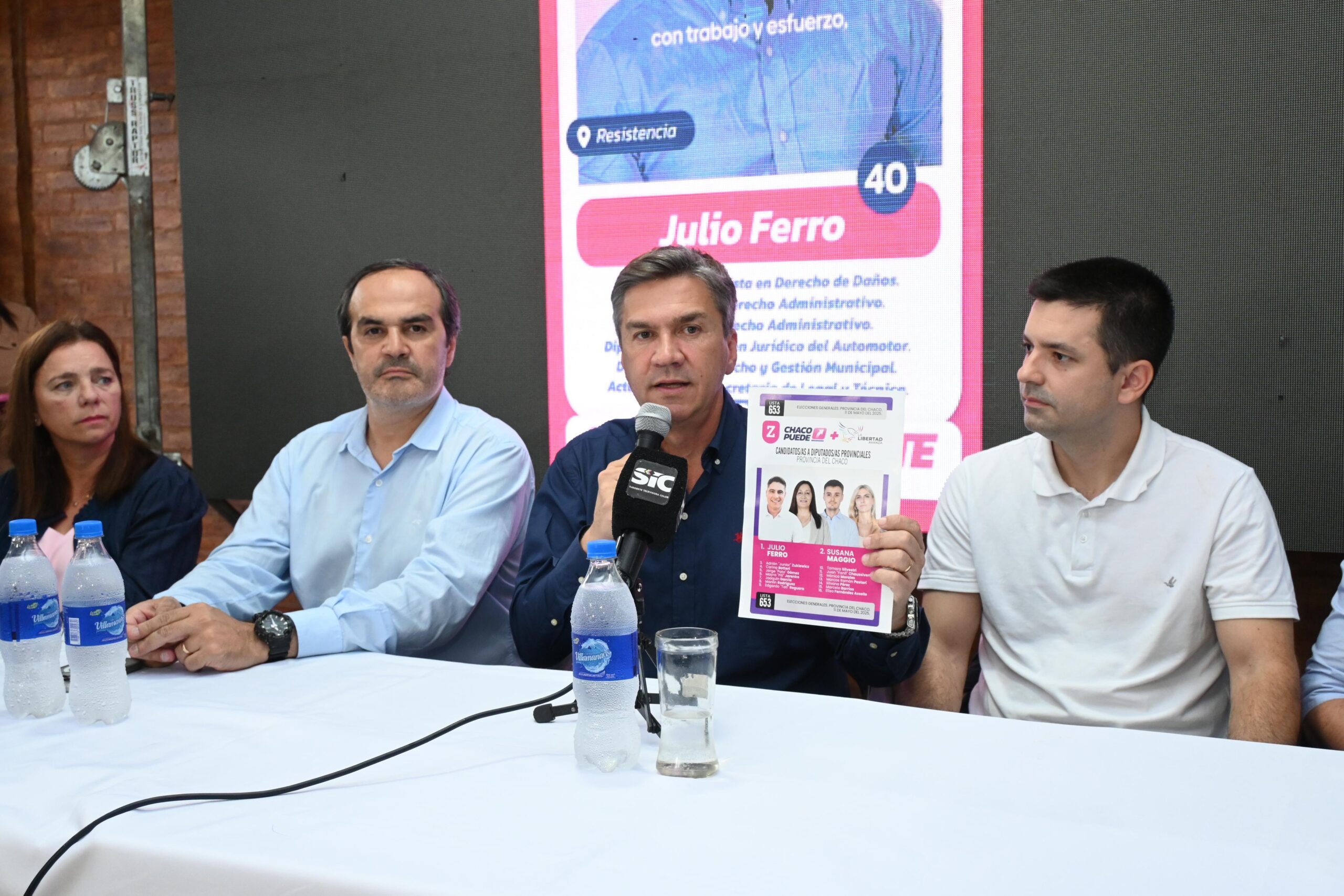 El gobernador Leandro Zdero, junto a los candidatos a diputados provinciales por “Chaco Puede + La Libertad Avanza”, Julio Ferro, Edgardo “Tati” Reguera y Marilín Rodríguez, encabezó hoy una conferencia de prensa en la ciudad de Presidencia Roque Sáenz Peña.
