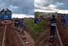 Un tren de carga descarriló el sábado pasado cerca de Rosario de la Frontera, en Salta. Afortunadamente no se registraron heridos, pero en un video del accidente que se volvió viral se puede apreciar la reacción del maquinista y otros operarios al ver el desastroso vuelco de la formación cuando intentaron moverla.