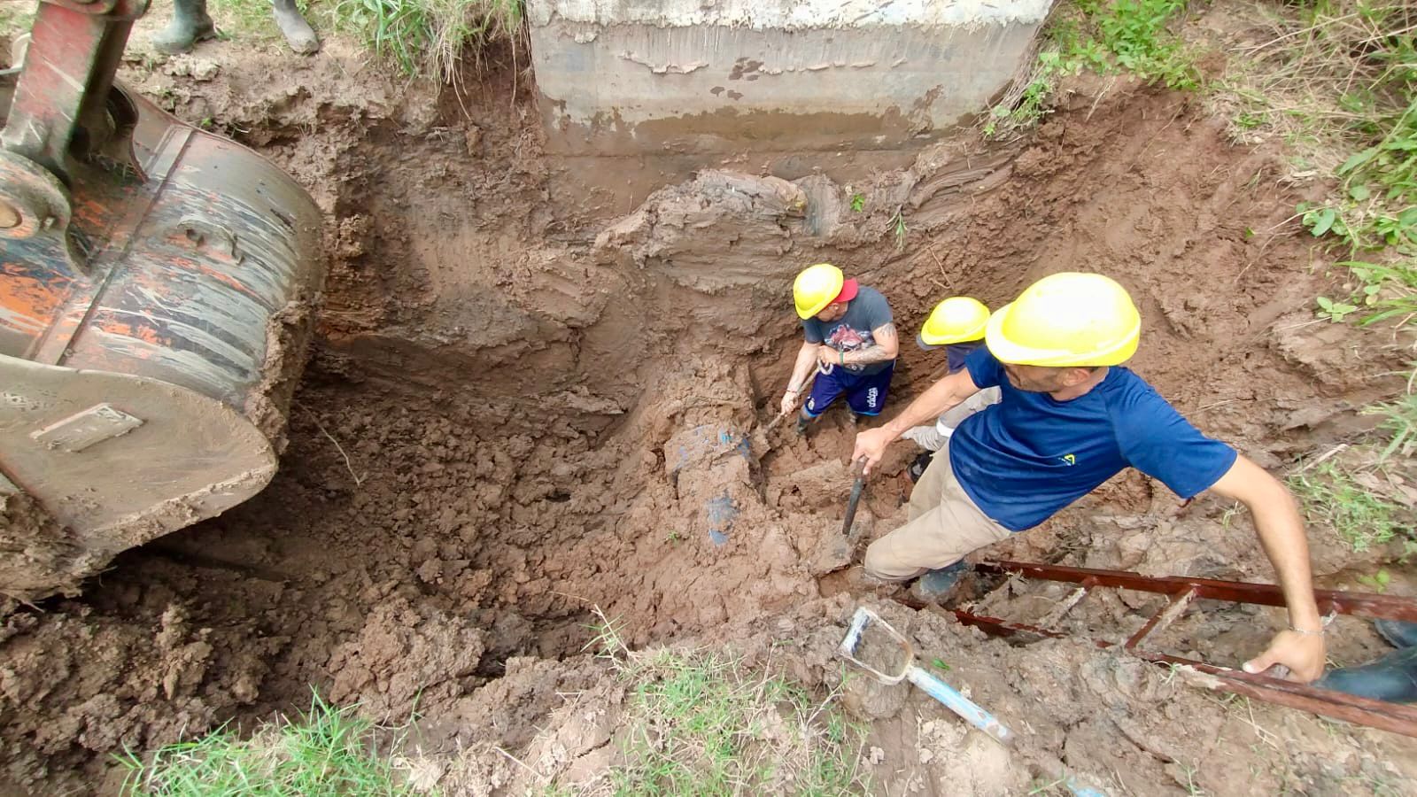 Finalmente, se reparó una pérdida en el acueducto próxima a una cámara y se están ejecutando otras en distintos puntos de la traza principalmente en el tramo de Presidencia Roca a Laguna Limpia, generando la colocación de piezas especiales.