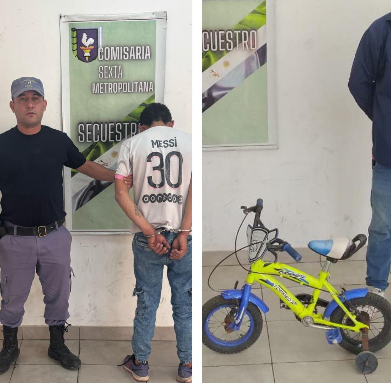El sujeto se llevó el rodado de una criatura, se trata de una bici verde color claro marca Top mega, los uniformados hallaron al autor del hecho en la vía pública, con el bien que había sido denunciado pero además tenía en su poder una picana eléctrica.