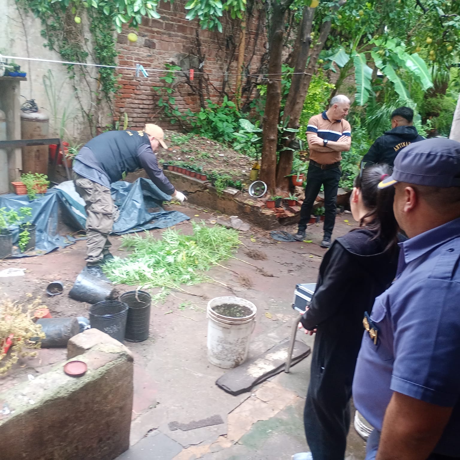 La intervención comenzó como un auxilio médico en un domicilio céntrico. Al asistir a un hombre con problemas de salud, los efectivos hallaron plantaciones de marihuana y un arsenal.