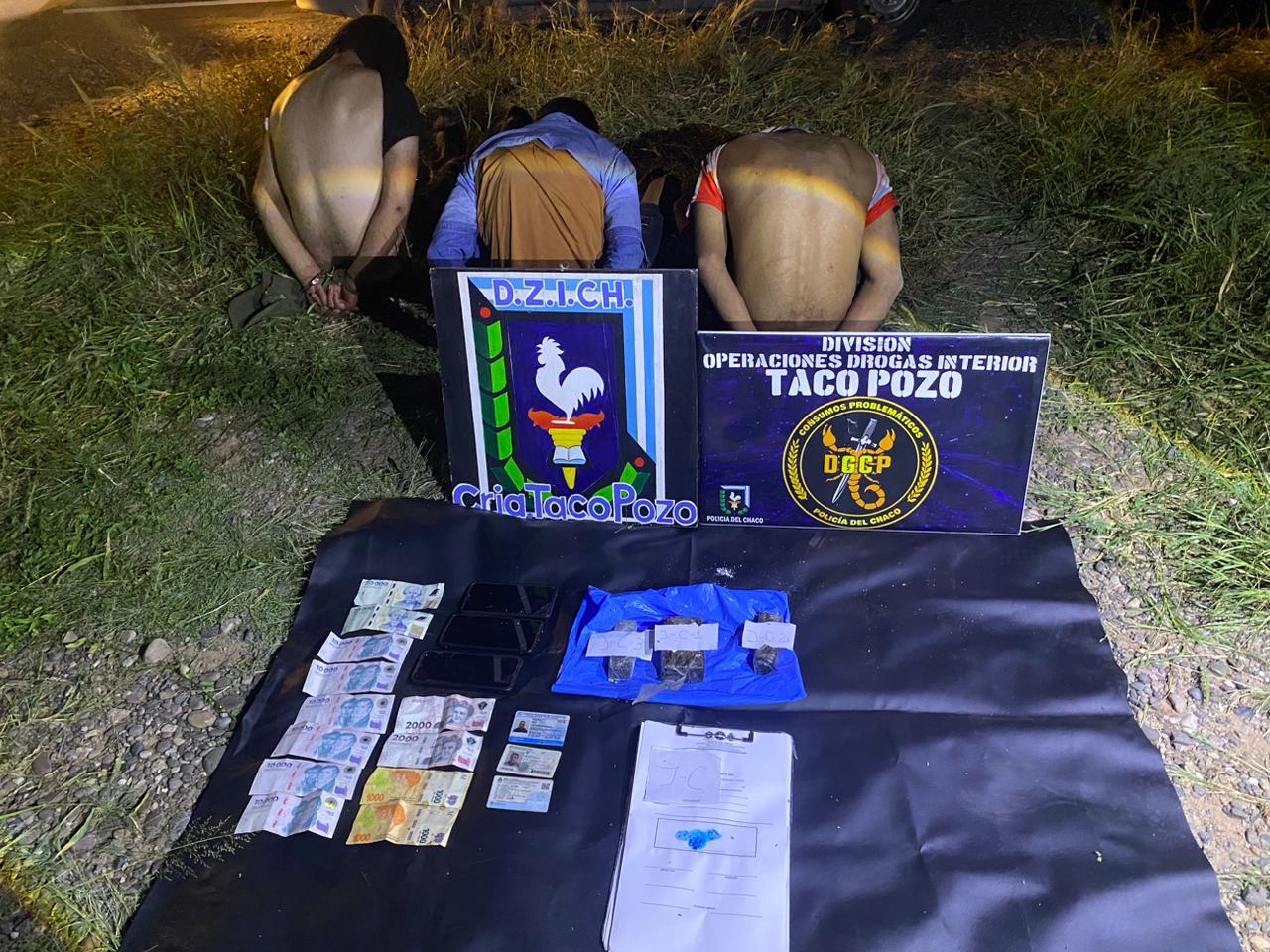Por disposición de la Fiscalía Federal de Sáenz Peña, se procedió a la aprehensión de tres hombres de 18, 18 y 39 años, quienes quedaron a disposición de la Justicia en una causa por presunta infracción a la Ley Nacional 23.737 de estupefacientes.