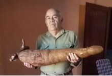 La pareja vive en una localidad del interior y descubrió el enorme tubérculo cuando realizaban sus tareas de mantenimiento.
