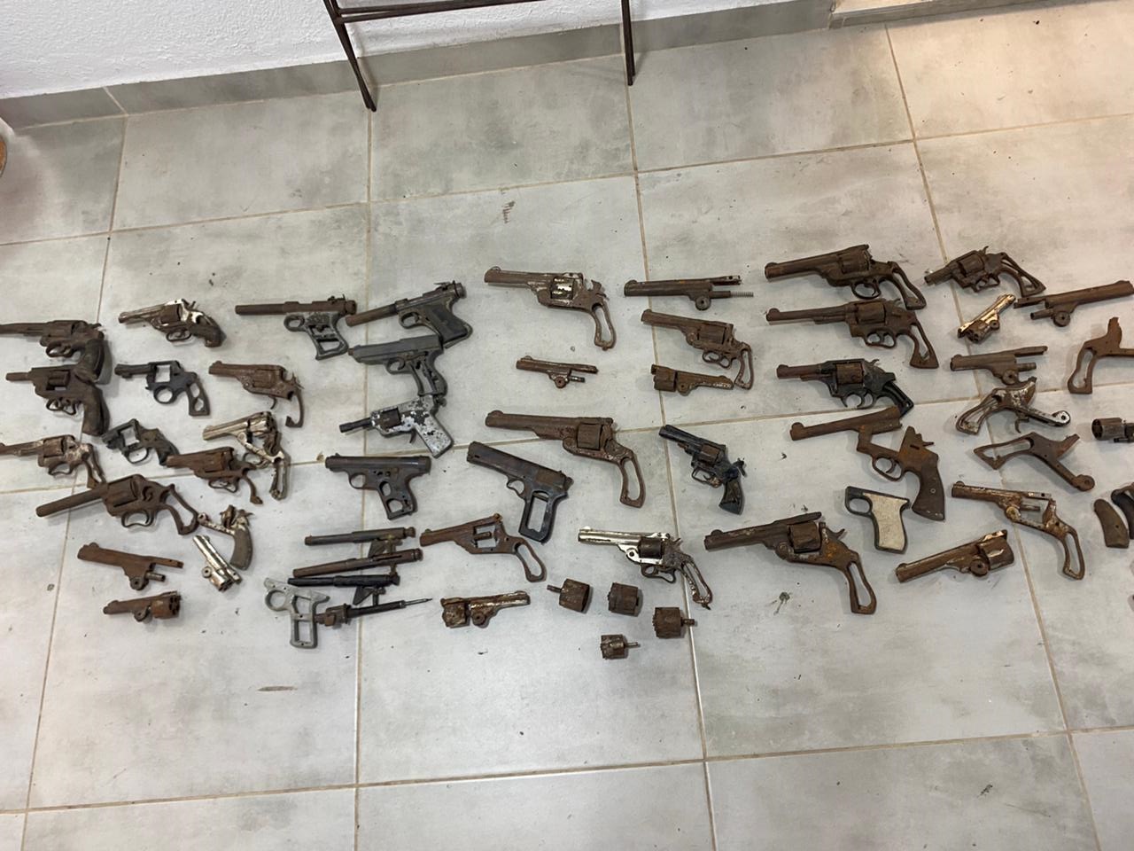 Rápidamente el personal al notar que vecinos intentarían intervenir en el procedimiento decidió trasladarse de inmediato a la comisaria donde contabilizaron 20 revólveres, 5 pistolas de distintos calibres y varias partes de armas de fuego.