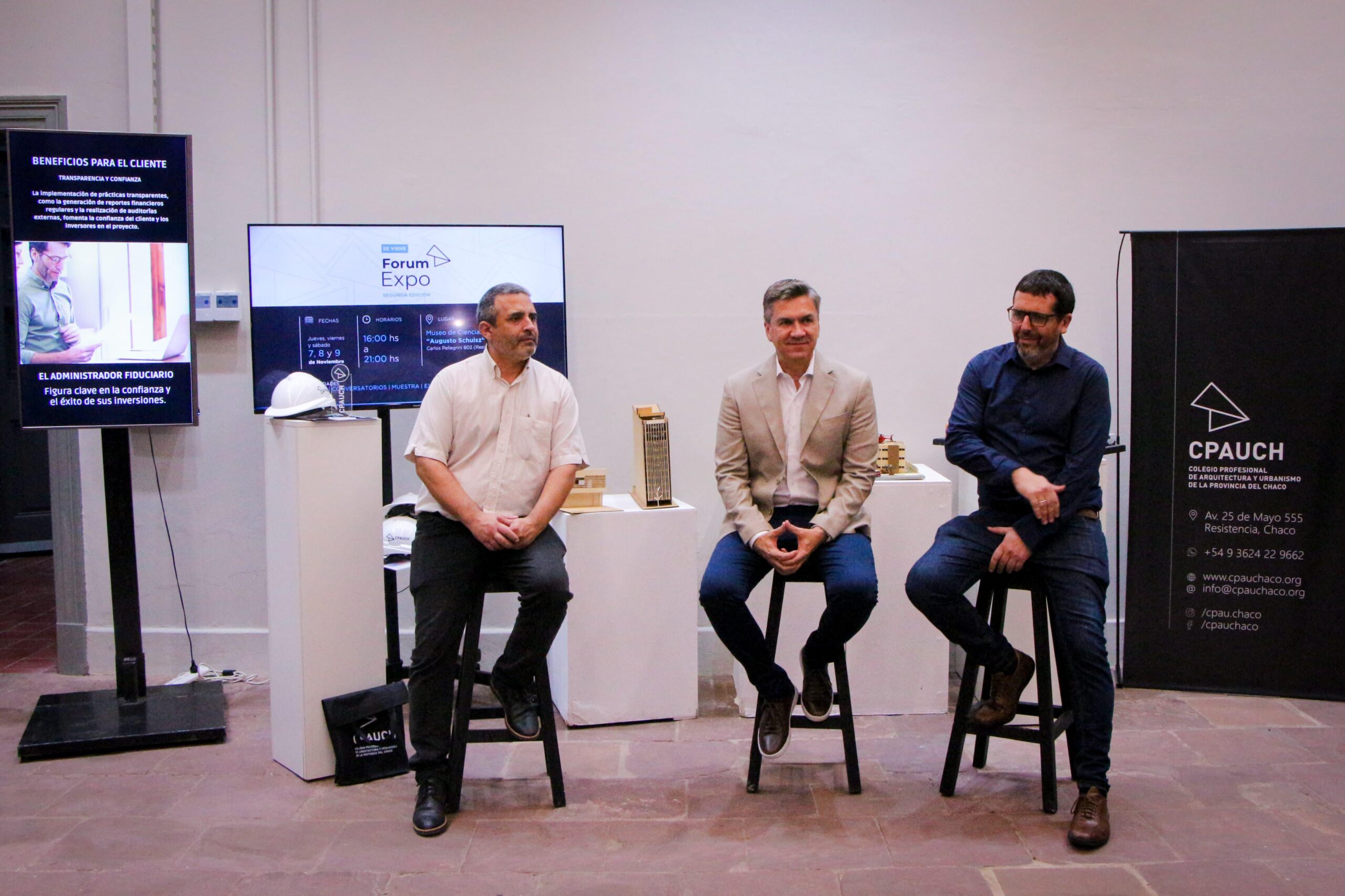 El gobernador Leandro Zdero acompañó el lanzamiento de la 2° Edición del “Forum Expo” del Colegio Profesional de Arquitectura y Urbanismo de la provincia del Chaco (CPAUCH), que se realiza en el Museo de Ciencias Naturales “Augusto Schulz” hasta el 9 de noviembre. En este marco, se realizó entrega de certificados de matrículas profesionales a nuevos arquitectos.