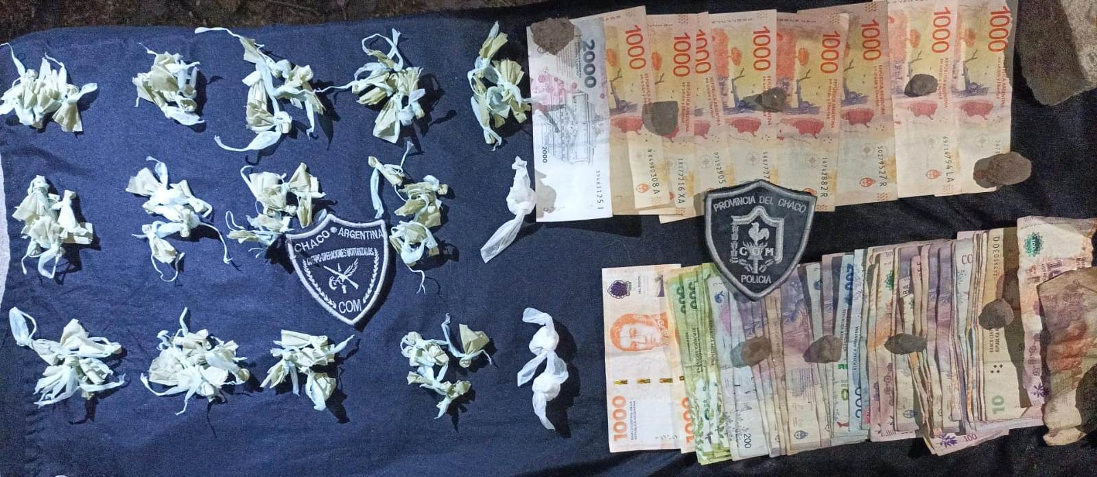 El demorado transportaba, 71 envoltorios de cocaína que arrojaron un peso total de 4 gramos, tres envoltorios con cannabis sativa y la suma de 20.110 pesos.